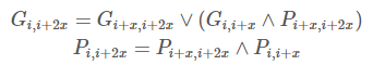 위와 같이 구간을 확대해가며 $G$, $P$값을 구하면 32bits 기준으로 $O$($\log_2{32}$) 깊이의 논리게이트를 사용해서 모든 $G$와 $P$를 구할 수 있다. 이로써 덧셈에 필요한 모든 값들을 구하였으며 원하는 결과값인 $S_i$를 구할 수 있다.
