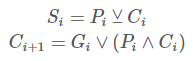 위 식을 보면 이전 결과값을 기다리는 $C_i$의 식을 재귀적으로 풀면 $G$와 $P$에 관한 식으로 나타낼 수 있다. $G$와 $P$는 식에서 알 수 있듯이 각 bit에 독립적이기 때문에 한 번에 연산이 가능하다. $C_i$를 이전 결과값에 의존적이지 않게 구할 수 있다는 것이다.
