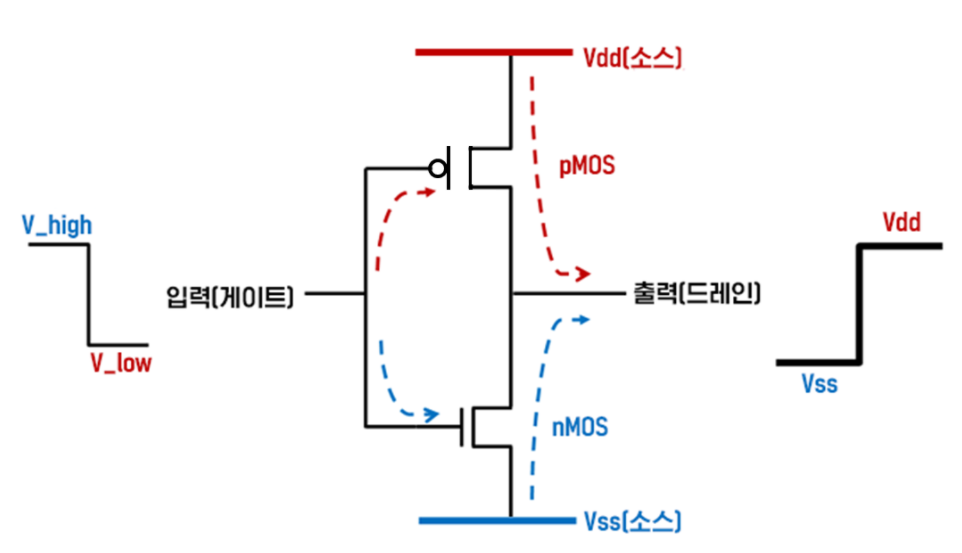 Metastability는 중간값을 가지는 것이 문제입니다. 문제가 되는 이유는 CMOS 회로는 간단하게 PMOS로 이루어져 VDD로 출력을 연결하는 PULL-UP회로와 NMOS로 이루어져서 출력을 GROUND로 연결하는 PULL-DOWN회로로 구성됩니다. 그래서 일반적인 Low혹은 High 입력에 대하여 PULL-UP만 ON되고 PULL-DOWN은 OFF 혹은 그 반대 상황이 되는것이 우리가 원하는 상황입니다. 단지 입력이 바뀌는 순간에만 순간적으로 PULL-UP과 PULL-DOWN이 모두 부분적으로 ON이 되어 VDD에서 GROUND로 전류가 순간적으로 많이 흐르게 됩니다.