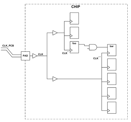PCB_CLK로부터 foo와 bar 플립플롭으로 도착하는 클럭의 시점은 아래와 같습니다.