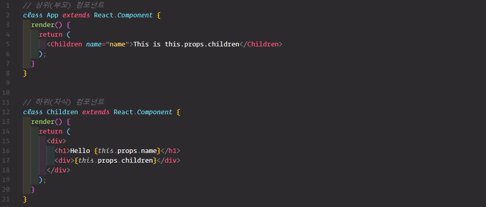 children은 "<자식 component>Children 데이터</자식 component>" 로 tag로 감싸진 부분의 데이터이다.