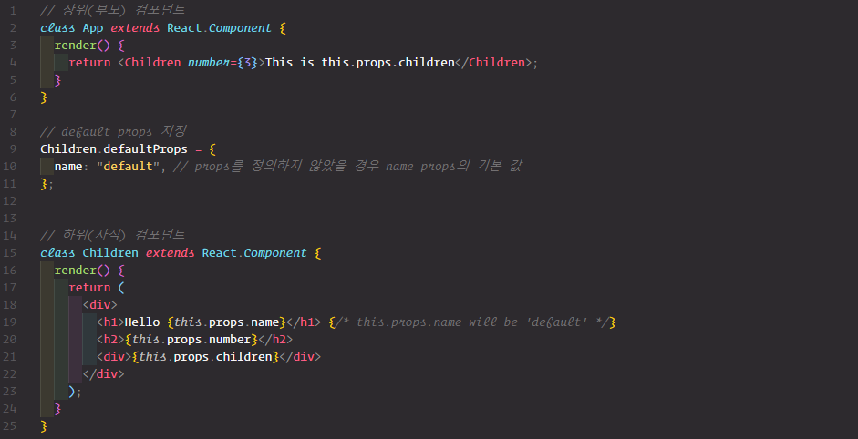 props에는 여러 종류의 method가 있는데 부모에서 넘겨주는 값 이외에 children, deafaultProps가 있다.